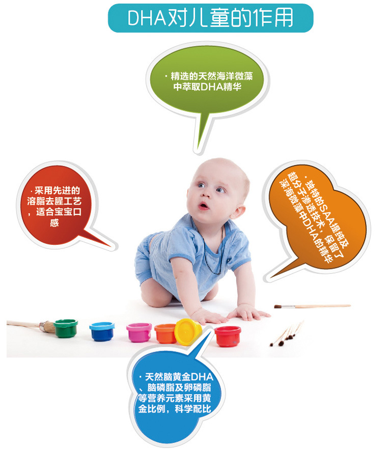DHA俗称脑黄金,是一种与智商提升有着非常密切关系的有助脑部发育的营养素,是人脑和视神经组织的主要成分,对宝宝的视力和脑力发育起着重要的作用。