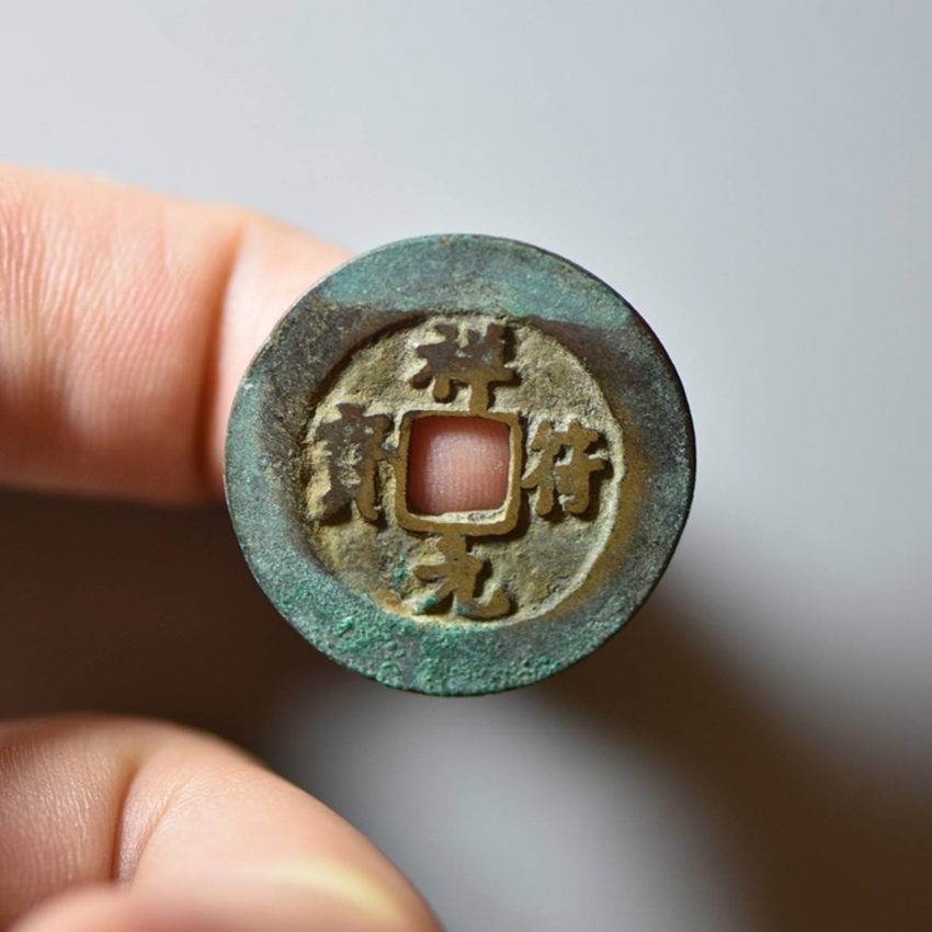 祥符元宝,北宋真宗赵恒祥符年间(公元1008到1016年)铸币。"祥符"乃祥瑞的符命,表福之意。其名富有祥瑞满溢之气,乃历史上名副其实的"吉祥符"币。自北宋以来,"祥符元宝"就成为有名的"吉祥",据载,其时币流用之后很多青年男女不仅把它作为定情的信物互相交换,而且不少地方古玩也有佩戴此作为吉祥护身符之习。由此可见,宋真宗一不小心颁行祥符年号,并以此年号铸,起到了超出货币功能的意想不到的作用。