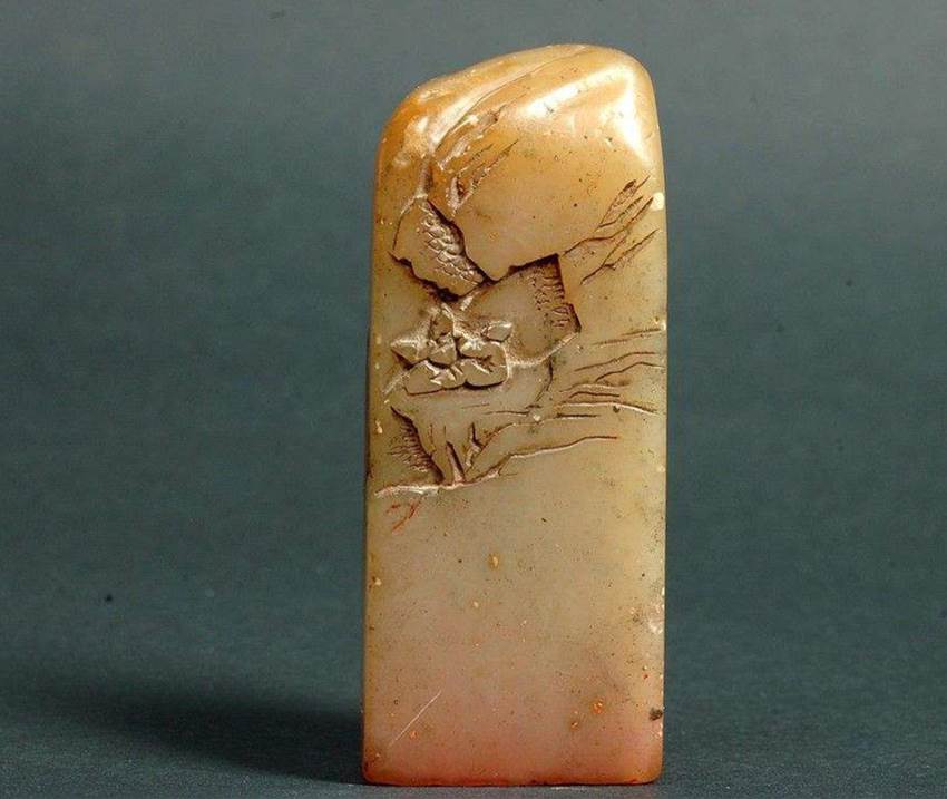 田黄圆闲章价格及图片,薄意雕,寿山石的主要技法雕刻形式,结合寿山石特有的肌理和色泽再进行石材的特殊艺术创作,真正的寓形入画,也巧妙的将画自然的诠释出一种艺术动感。此件藏品雕工精美,创意独特。