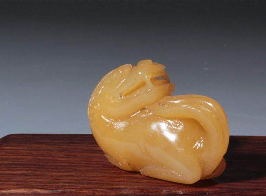 而在近几年的各大拍卖场中,田黄制品也是屡屡创下天价,如一件大清乾隆田黄云蝠纹山子,以620万元成交,一套十一件的周尚均制吴国祯夫妇自用田黄印章,因其精美绝伦的造型,更以2530万元天价成交,无独有偶,以三个和尚的故事为名的血红田黄,以其独特的艺术魅力以2200万元的价格成交,可见每一次在拍卖场中出现的田黄精品,无一不受到人们的喜爱。此枚田黄印章更是田黄石中的精品,且雕刻细腻传神,整体石形婉约柔美,可谓不可多得的品赏