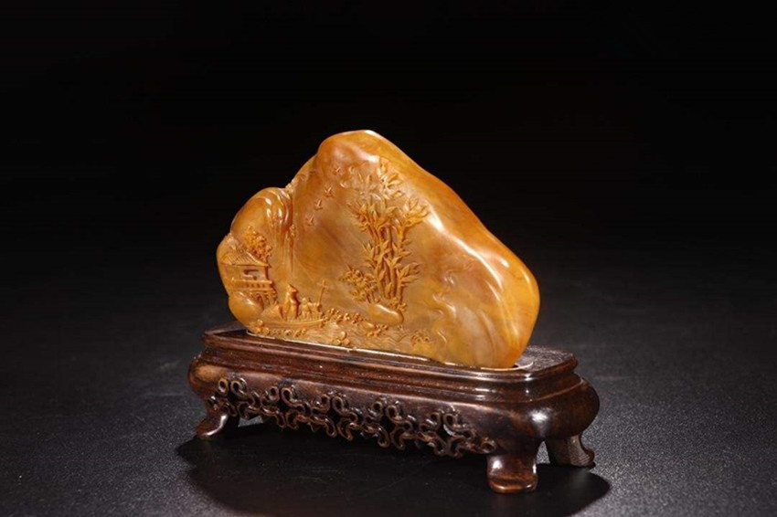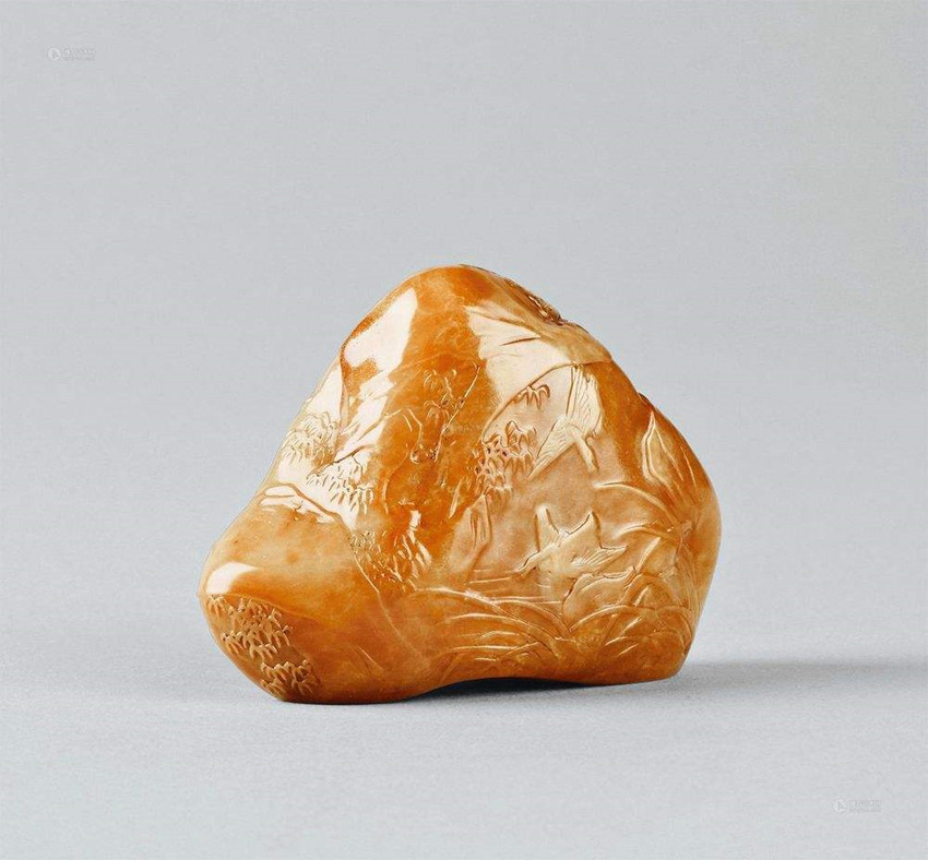 郑世斌 田黄石薄意随形摆---估价250.00到350.00万---成交价:RMB391.00万---成交日期:2017年12月19日